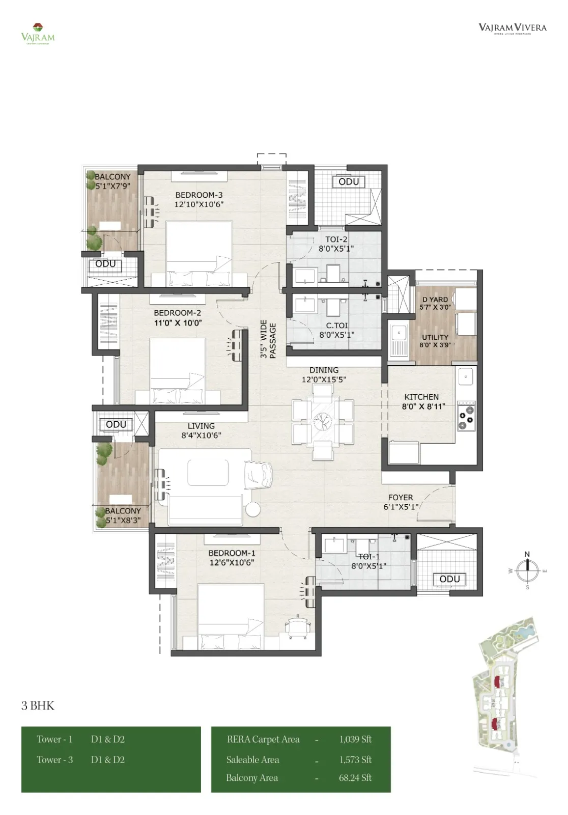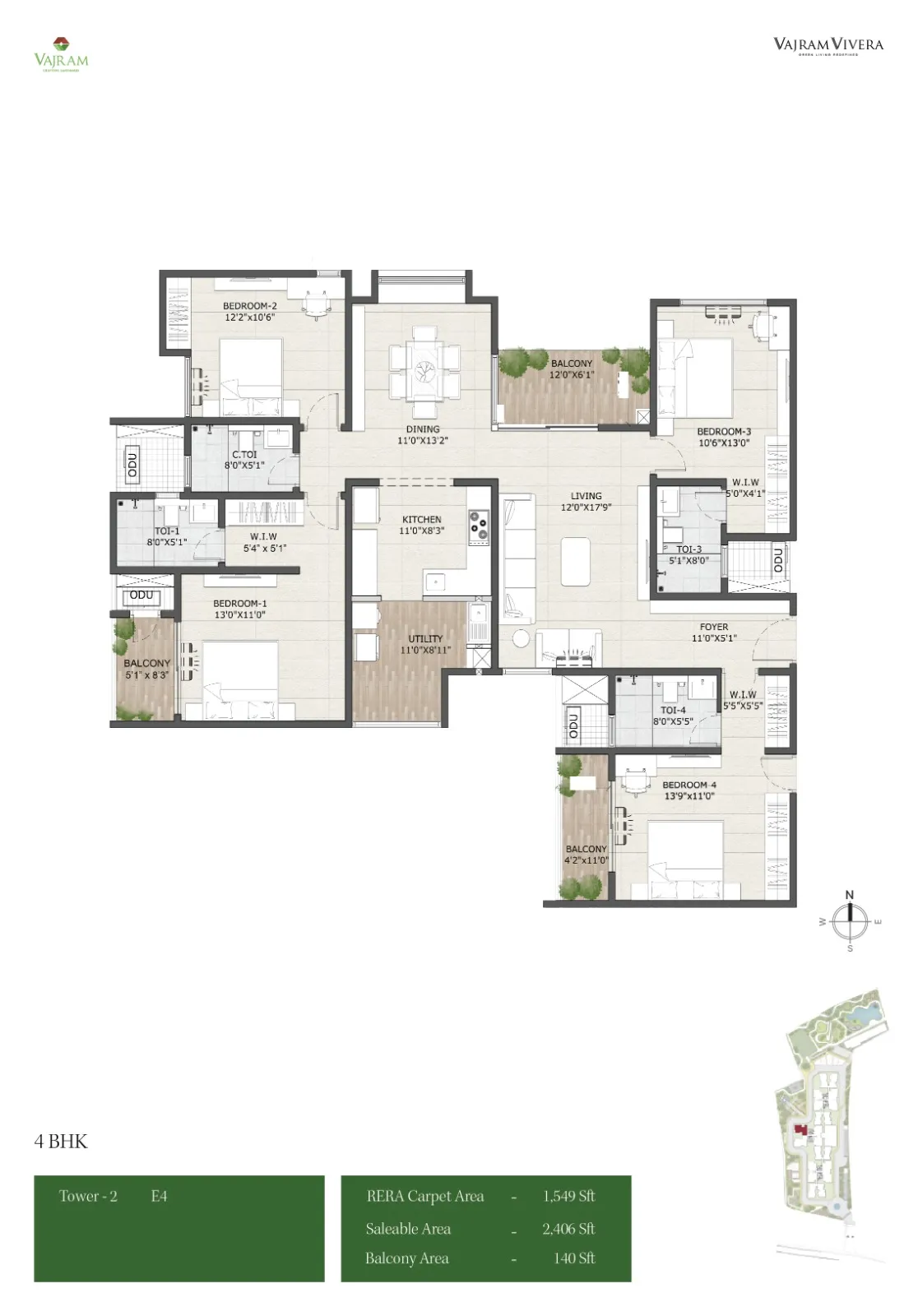 Vajram Vivera is a premium 6.2-acre residential community near Kogilu Main Road, featuring 3 & 4 BHK spacious apartments, world-class amenities across 2.5 acres, and 85% open green spaces. Designed for modern multi-generational living, it offers excellent connectivity to Manyata Tech Park, Bhartiya City, major business hubs, malls, healthcare, and education centers across North Bangalore. Located in a high-growth corridor, Vajram Vivera combines luxury, comfort, and strong investment potential — making it an ideal choice for homeowners and investors alike.